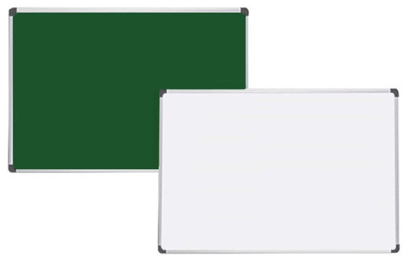 Бархатистая рабочая поверхность меловой стороны гарантирует отсутствие бликов и минимальное осыпание мела. Мел стирается сухим или влажным способом. Преимущества алюминиевого профиля доски это лёгкий вес и отсутствие ржавого налета при попадании влаги в процессе эксплуатации.
