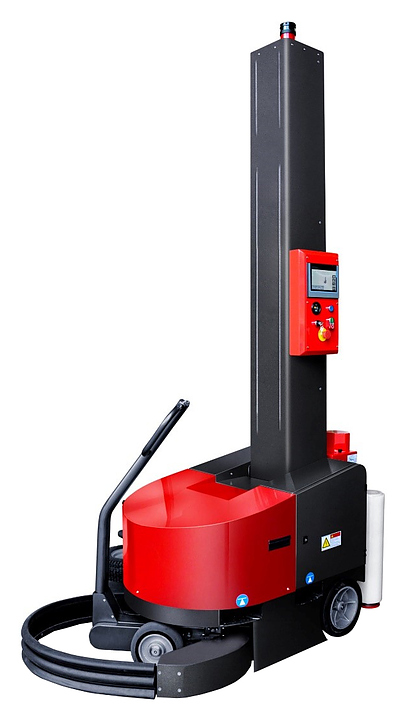простота обслуживания, настройки и эксплуатации. Оператору достаточно подвезти обмотчик к паллете или платформе с грузом, закрепить стрейч-пленку в основании поддона и запустить цикл упаковки путем нажатия стартовой кнопки. После этого аппарат самостоятельно перемещается вокруг груза и обматывает его пленкой по заданной программе обмотки. Единственное требование к условиям работы – ровная поверхность для перемещения обмотчика. Максимальная скорость перемещения – до 20 об/мин, что соответствует 80 м/мин, если делать расчет исходя из габаритов стандартной паллеты 1200х800 мм;